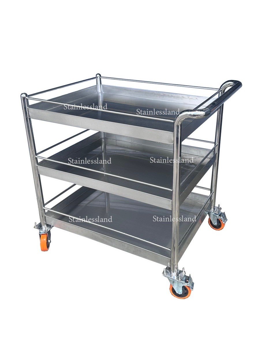 รถเข็นสแตนเลส 3 ชั้น +ขอบกันตก